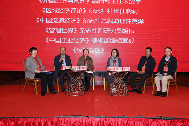 会议同时召开了经管学科学术期刊论坛,《外国经济与管理》编辑部主任宋澄宇、《区域经济评论》杂志社社长任晓莉、《中国流通经济》杂志社总编助理林英泽、《管理世界》杂志社副研究员胡伟、《中国工业经济》编辑部编辑覃毅分别就其杂志社的基本情况、办刊特色和征稿要求进行了简要介绍并与在场的参会代表进行了互动交流。